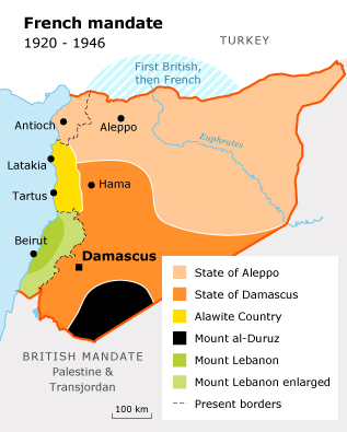 Im Versuch, einen allein aus maronitischen Christen bestehenden Staat zu schaffen, trennen die Franzosen den Libanon von Syrien ab. Da das von den maronitischen Christen bevölkerte Territorium jedoch zu klein ist, um einen lebensfähigen Staat zu bilden, werden dem Libanon auch Bereiche angegliedert, die hauptsächlich von Sunniten und Schiiten bewohnt sind, welche sich in Syrien bedeutend wohler gefühlt hätten.